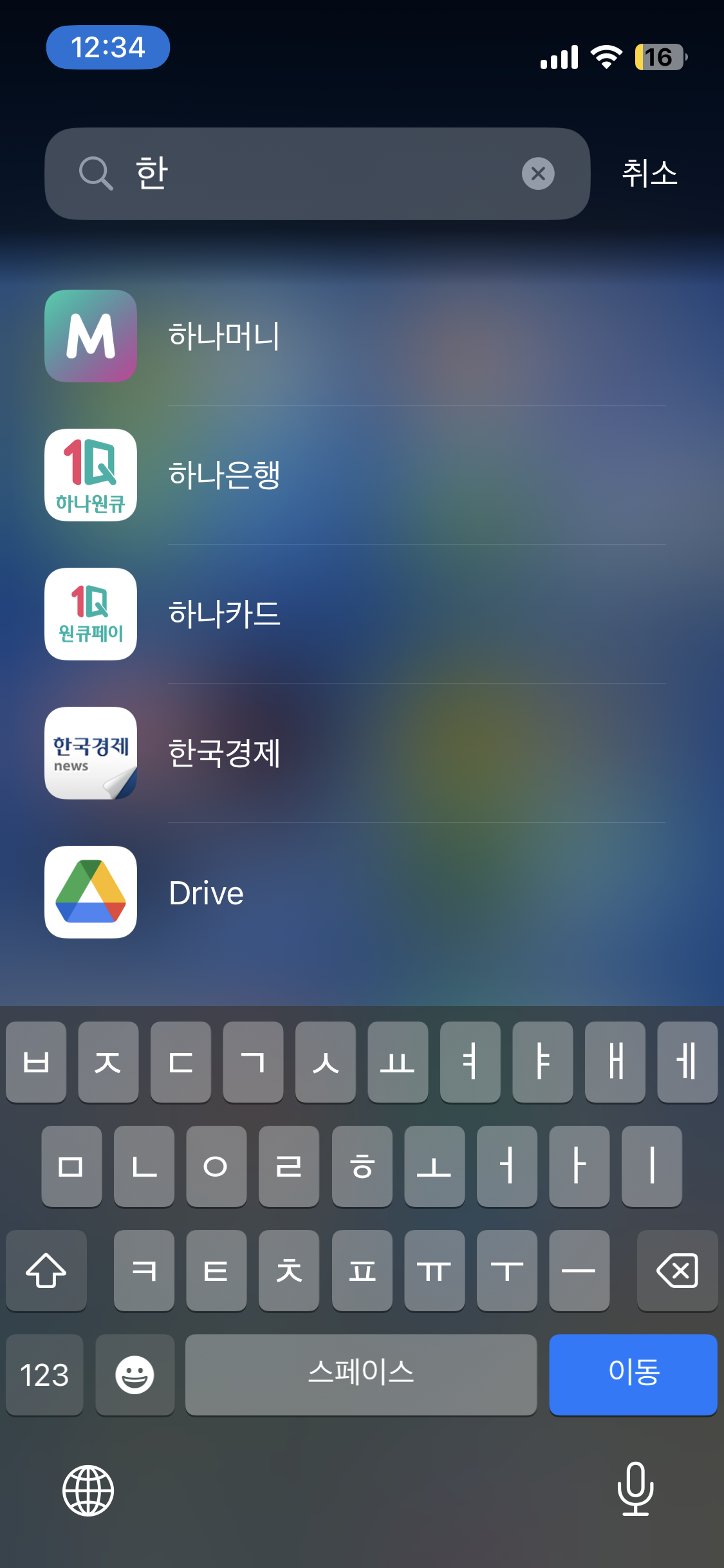 하나머니, 하나카드, 하나은행 다 존재하는 앱인데도 안 뜨다가 ‘한’이라고 하니까 뜸