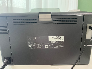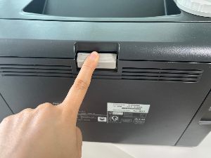 프린터기 뒷면을 보면은 가운데 윗 부분에 회색 버튼이 있다.