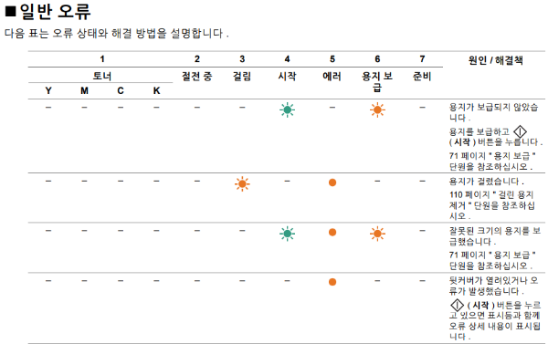 이 표에 따르면 용지가 걸려서 그렇다고 하니까 한 번 용지를 빼보자.