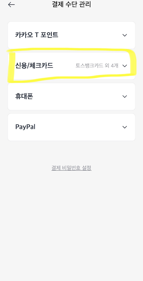 결제수단 관리를 누릅니다