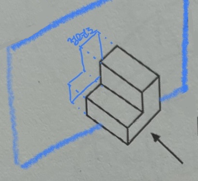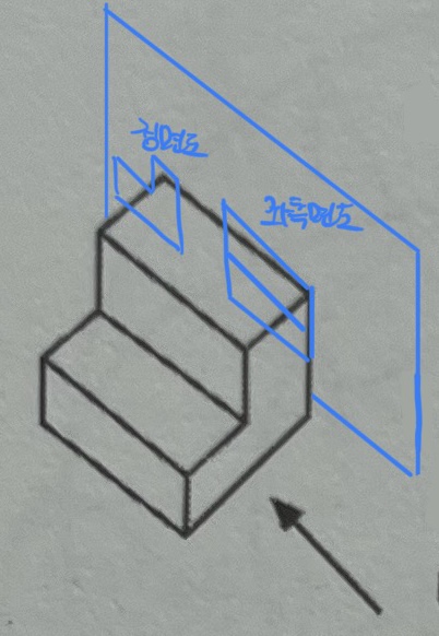 내 눈, 물체, 종이 순서대로 바라보게 되므로, 우선 정면도를 그리게 되면