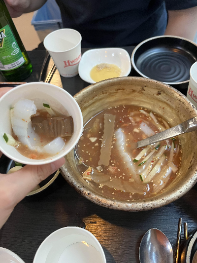 고기 나오기 전에 묵사발만 계속 먹었어요