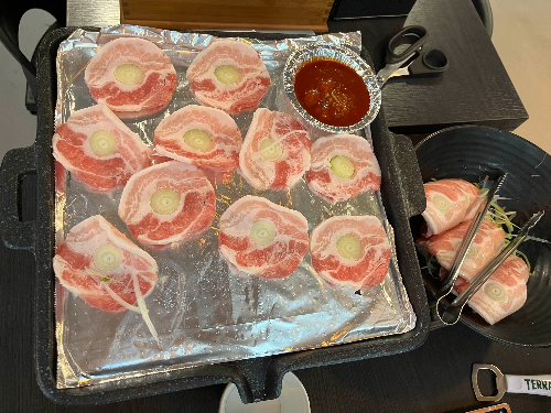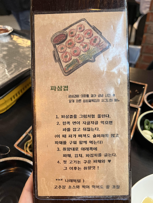 블로그 쓰려고 찍어놓은 걸 읽다 보니까 생삼겹에 대파를 그냥 꽂은 것 같네요