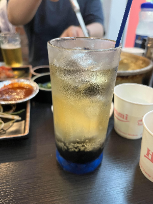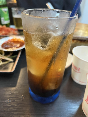 얼그레이 골든 하이볼이 고기 굽는 동안 나왔는데 밑에 시럽이 가라앉아 있으니까 잘 섞어주세요