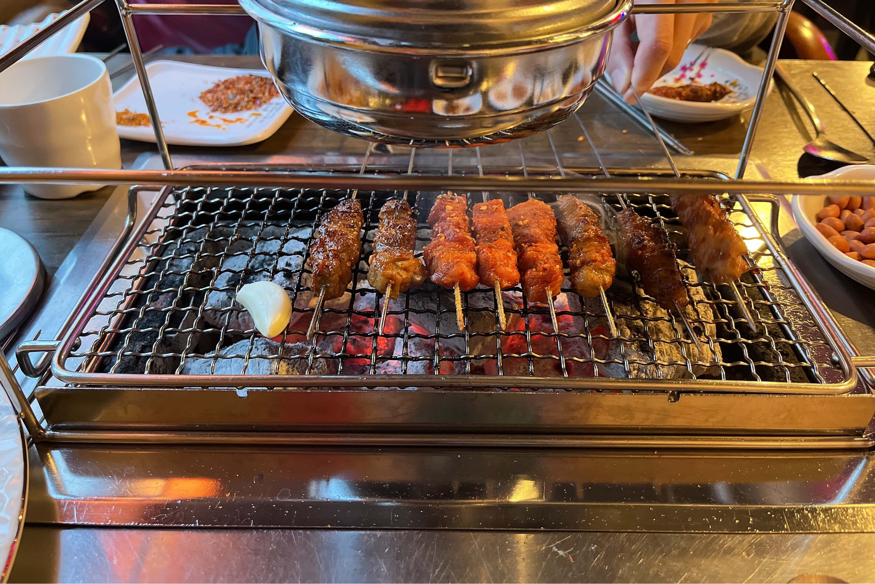 양꼬치 불 위에 놓고 돌리는 거 예상하고 갔는데 그냥 석쇠에 숯불로 구워먹는 거였음