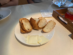 식전빵이 나왔는데 빵 옆에 있는 게 치즈인줄 알았는데 버터였어요