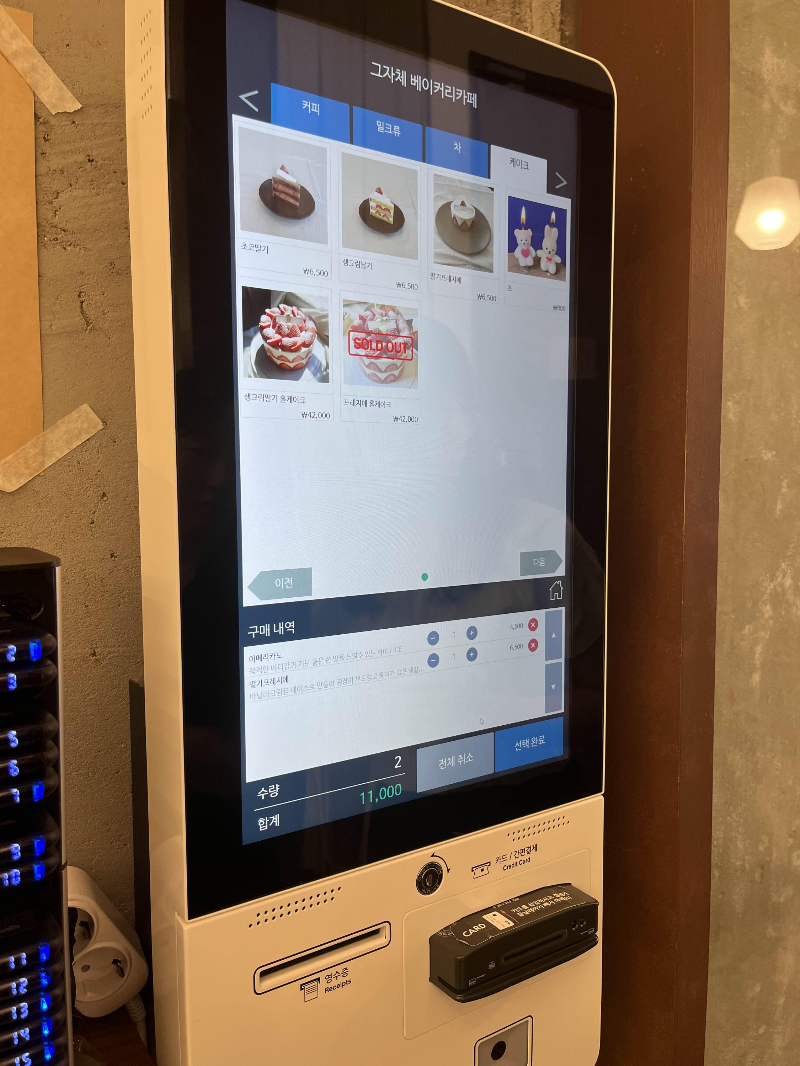계단을 올라오자마자 오른쪽으로 꺾으면 키오스크랑 매대가 있고, 왼쪽으로 꺾으면 좌석이 나온다. 화장실은 좌석 쪽으로 가는 길목에 있는데 화장실 깔끔한 곳 좋아하는 친구들이 만족한 화장실이었다.