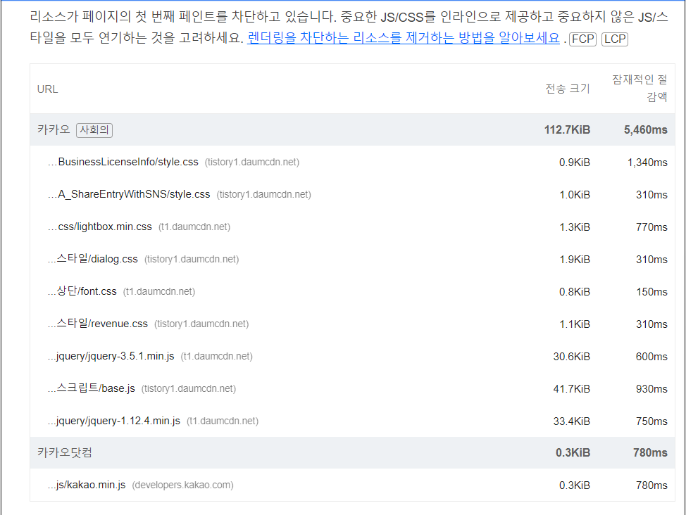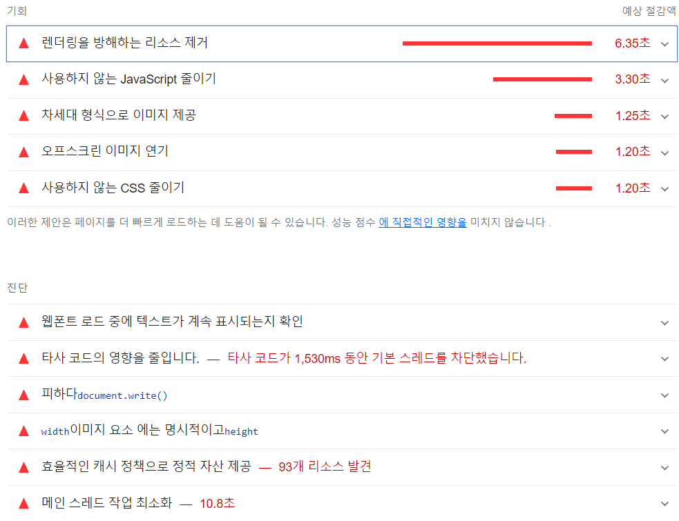 그런데 들어갈 때마다 페이지 성능 개선 알람이 떴어요.