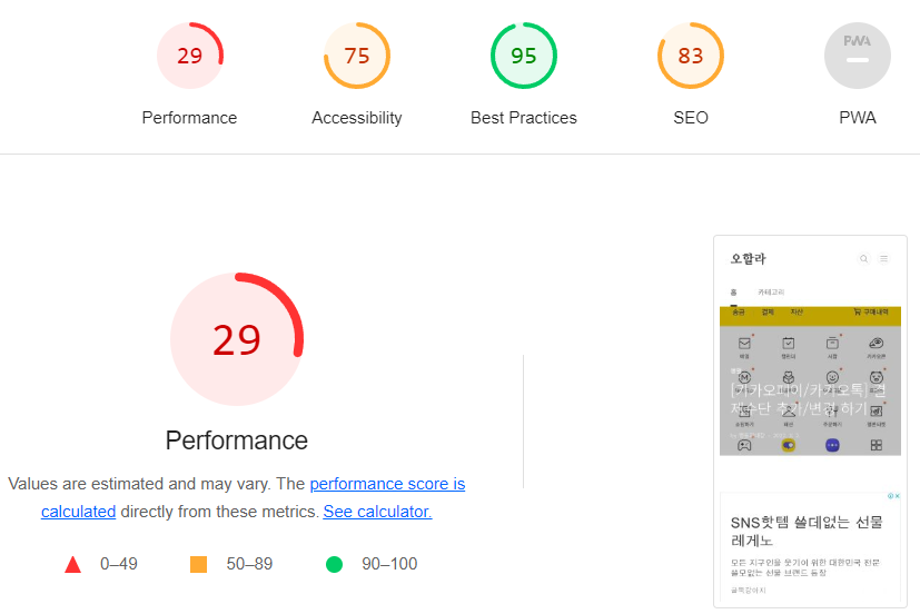 맨날 무시만 하다가 최근에 제대로 읽어봤는데, 모바일 환경이 너무 좋지 않으니 google lighthouse를 이용해서 성능을 확인해 보라는 공지더라고요.