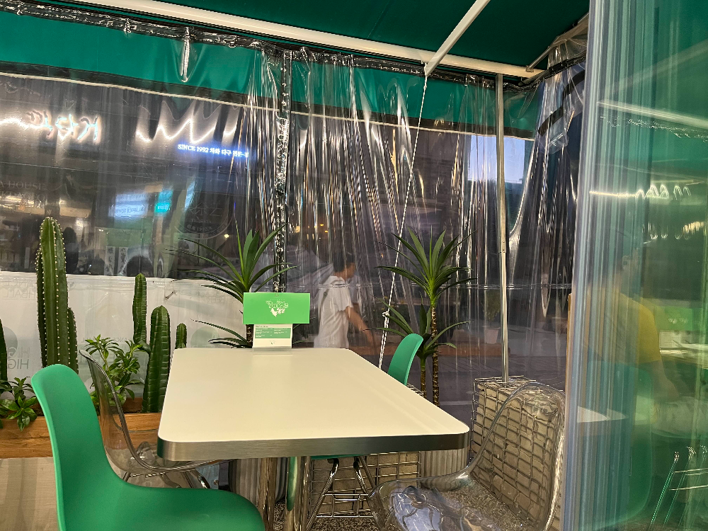 민트 느낌의 초록색과 회색 빛 인테리어가 예뻤어요
