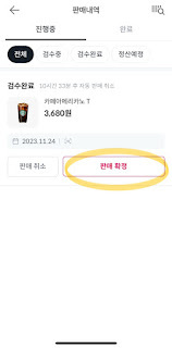 검수가 완료되면, 판매 확정을 누릅시다