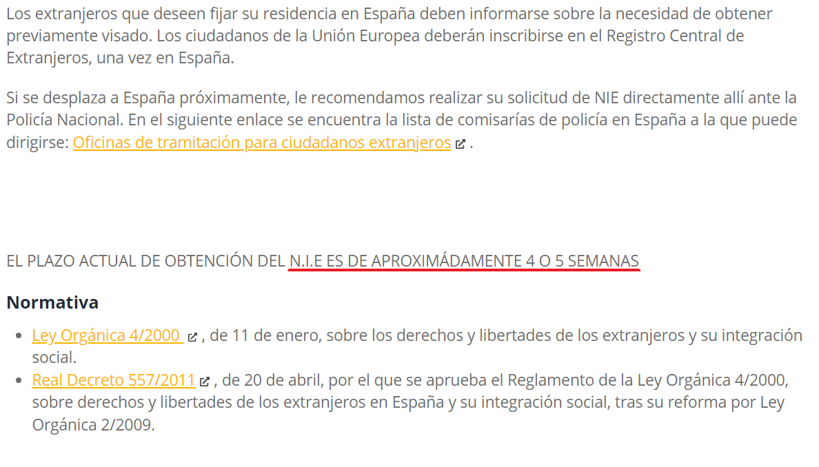 구글에 embajada españa nie 라고 쳤고 NIE 발급은 4주에서 5주 걸린다는 내용을 발견했습니다.
