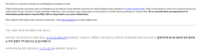 무슨 일이 있는 지 알고 기다리면 불안하지 않기라도 하지 신청한지 한 달 지난 시점에서는 대사관도 전화 회선 4개 전부 다 안 받고 물어볼수도 없고 너무 불안해가지고 스페인어로도 검색을 열심히 했습니다.