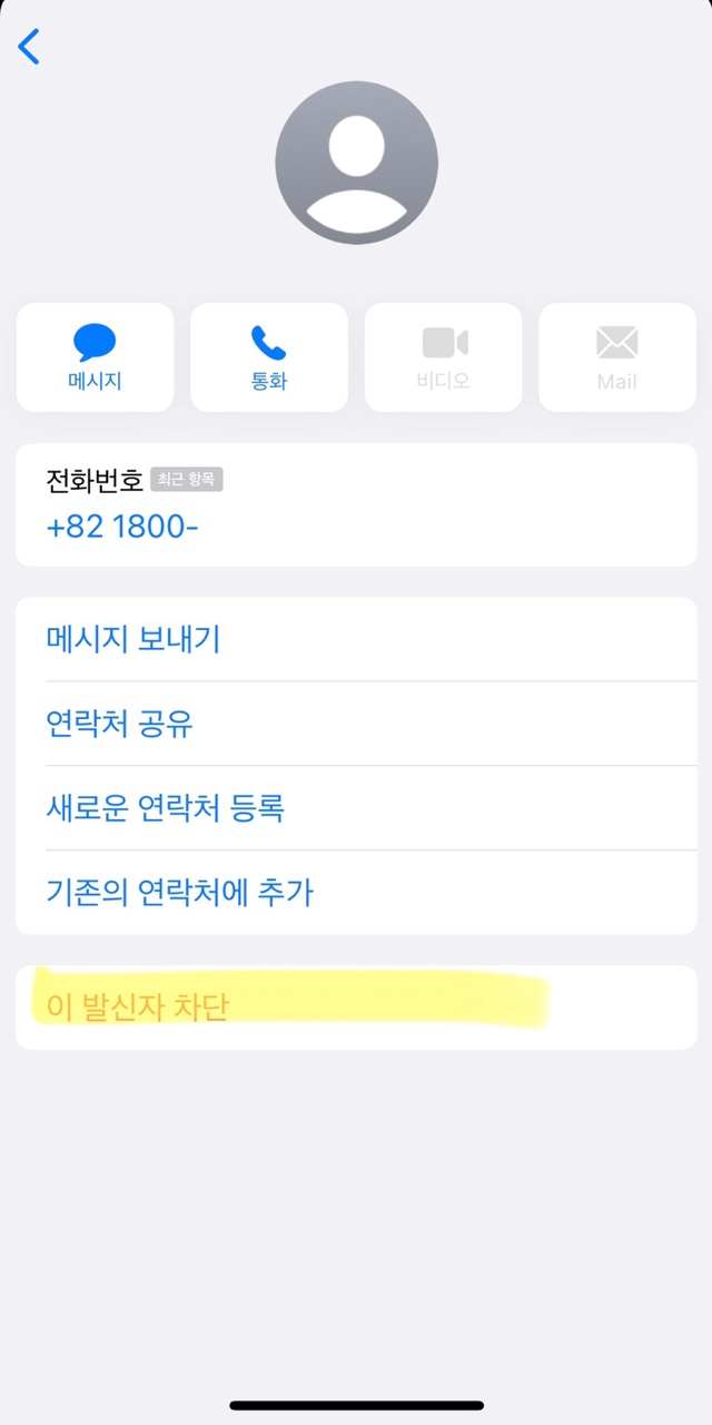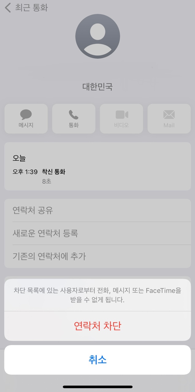 그리고 연락처 차단을 누르면 끝