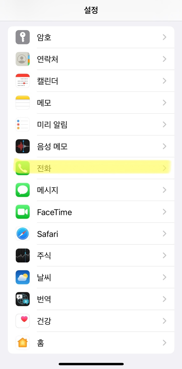 설정에서 밑으로 내리다 보면 전화가 있다. 전화를 눌러보자
