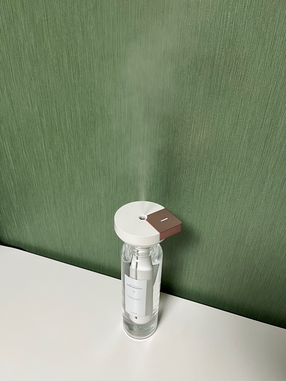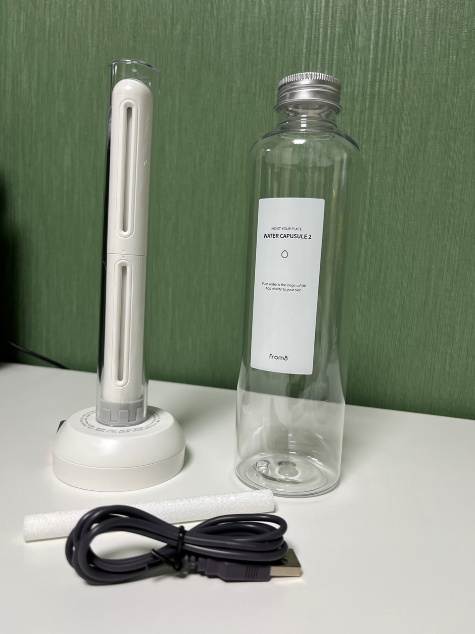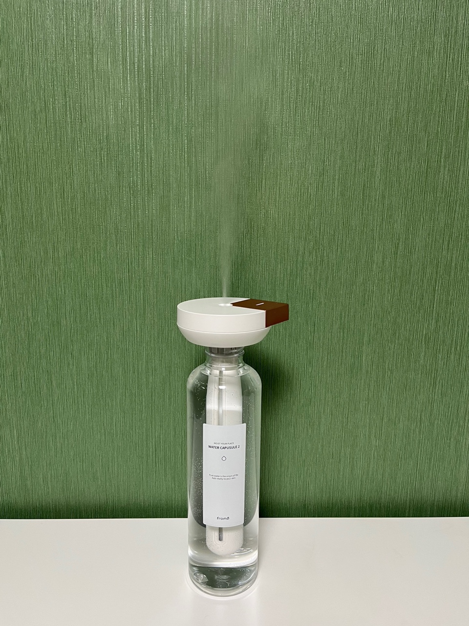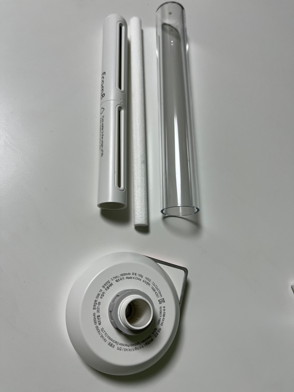 자는 동안 켜 두고 잤는데 일어나니까 꺼져있었다. 한 번 충전하면 얼마나 가는 지는 정확히 모르겠지만 설명서 상에는 4시간에서 8시간 정도 지속된다고 한다. 물은 처음 꽉 채워놓은 거에 비해 1/3만 남아있었다.