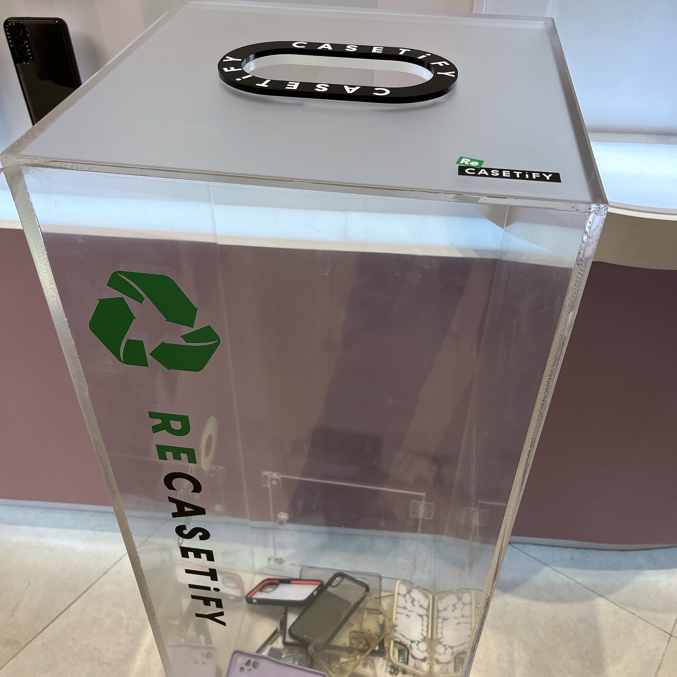 여기서 폰케이스를 사고 이미 쓰던 폰케이스는 수거함에 넣으면 갈아서 재사용한다고 한다.