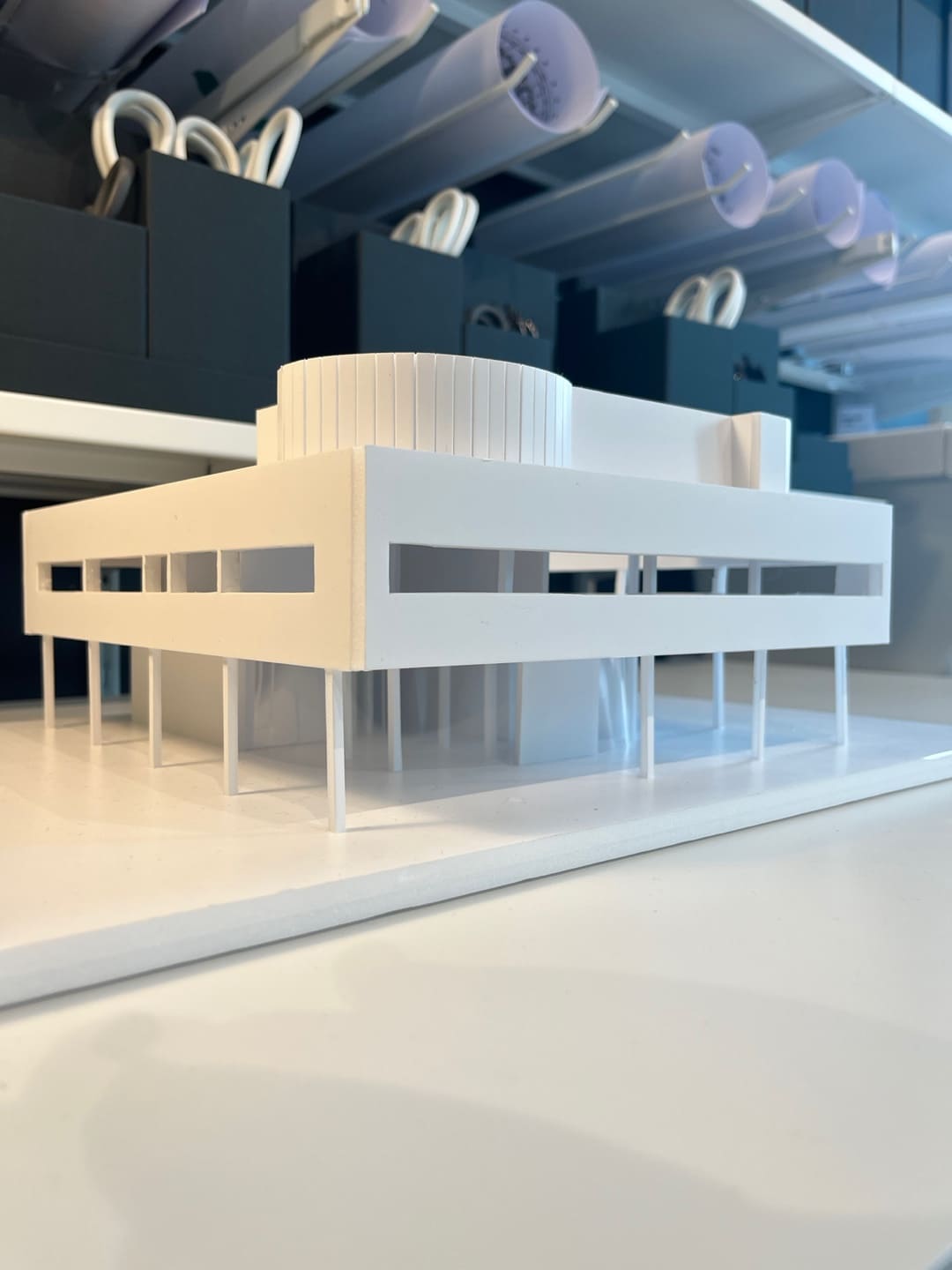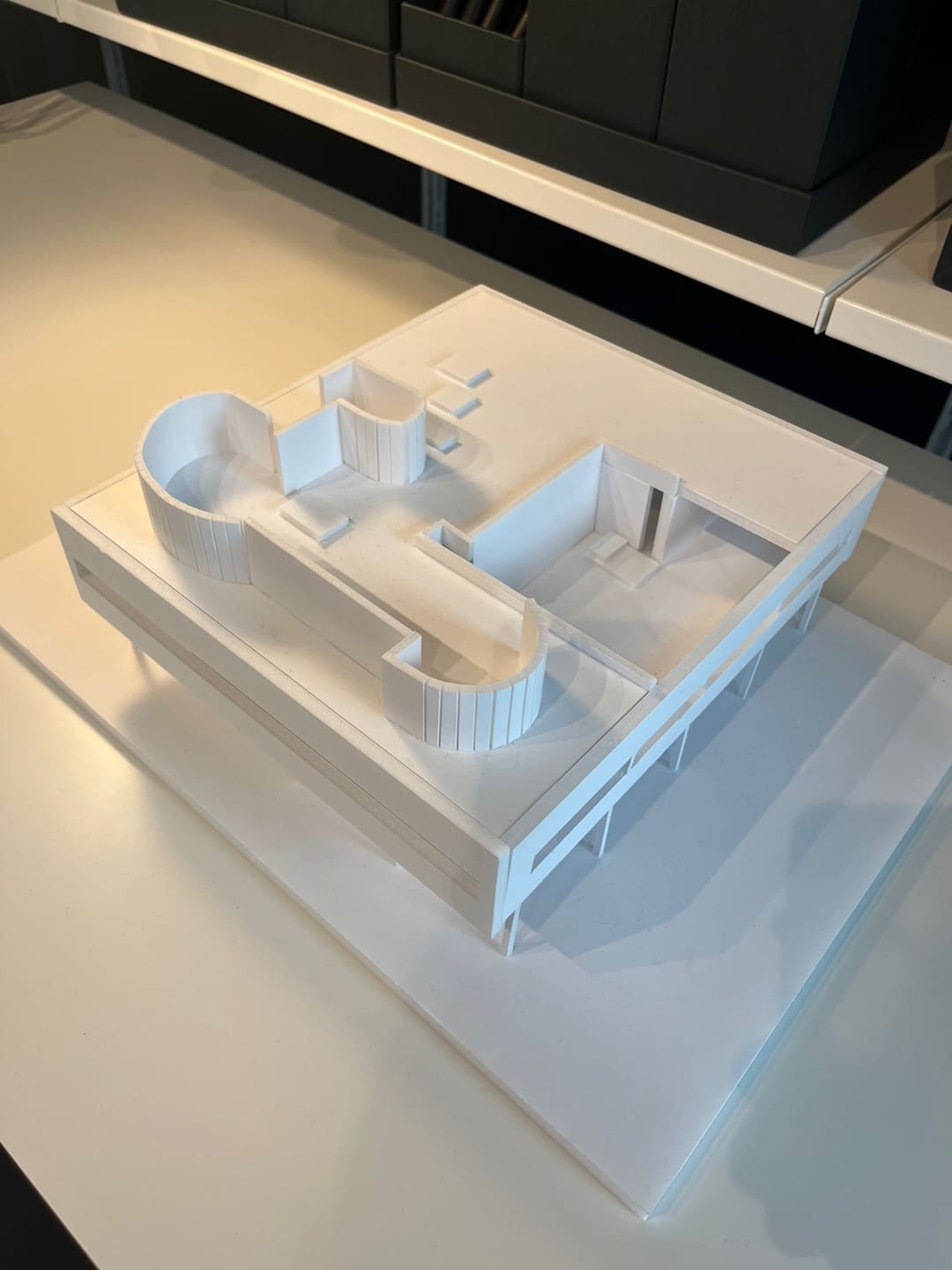 바르셀로나 파빌리온, 빌라사보아 모형이 있었는데 누가 만들었는지 궁금했다. 우드락이 조금 울었다. 만드느라 정말정말 수고했을 것 같다. 그래서 가장 잘 만들어진 것처럼 보이는 빌라사보아를 책상 위에 둔 것 같다.