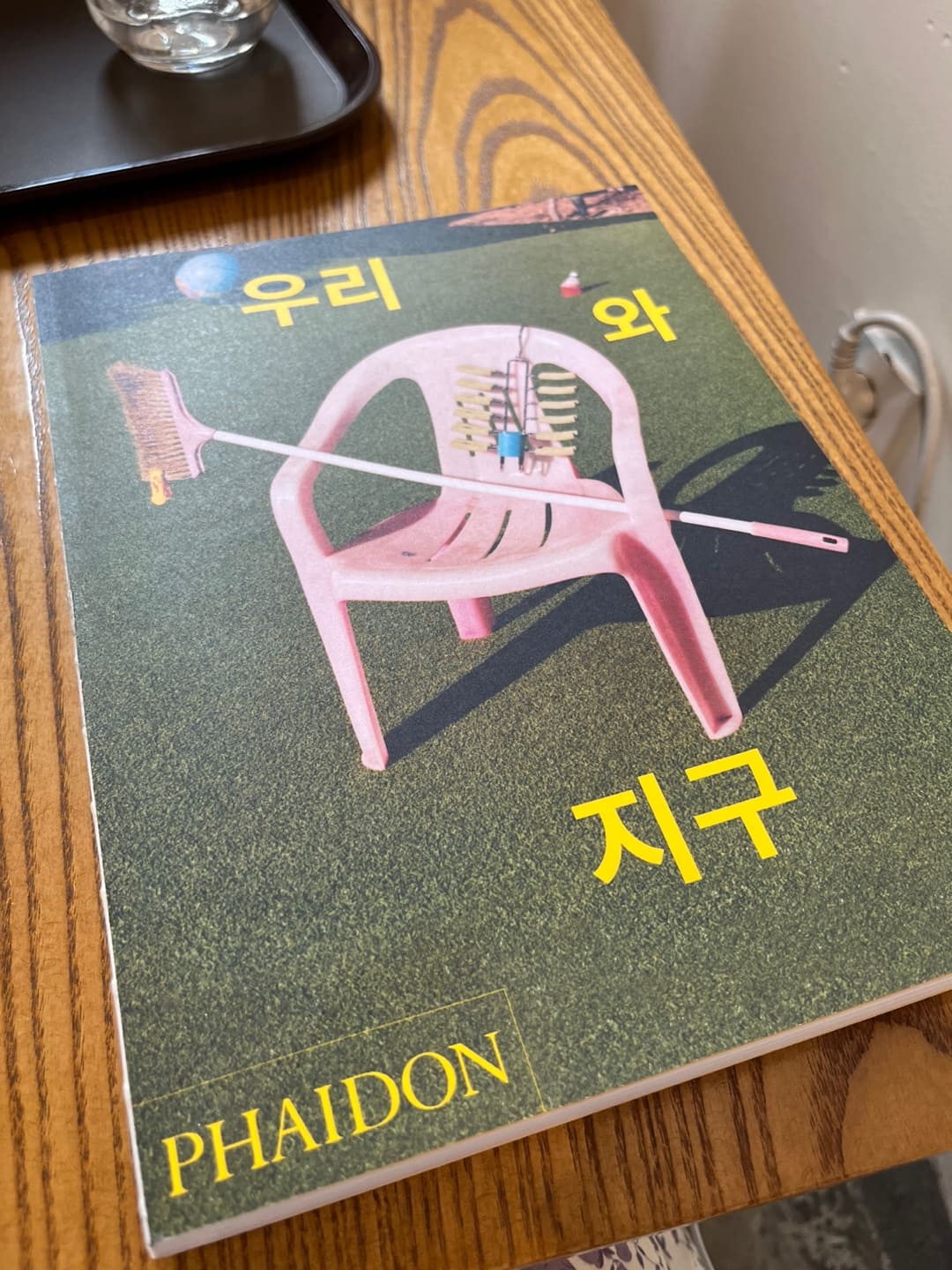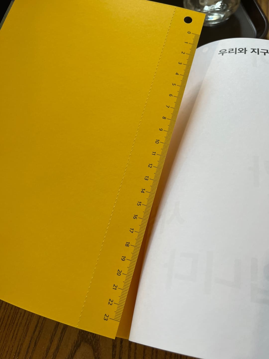 팝업스토어 다 보고 근처 카페 가서 남자친구가 퀴즈 풀고 받은 책 봤는데, 친환경적인 소재로 쓰여진 책이었다. 첫 페이지에 종이 자가 있어서 신기했음