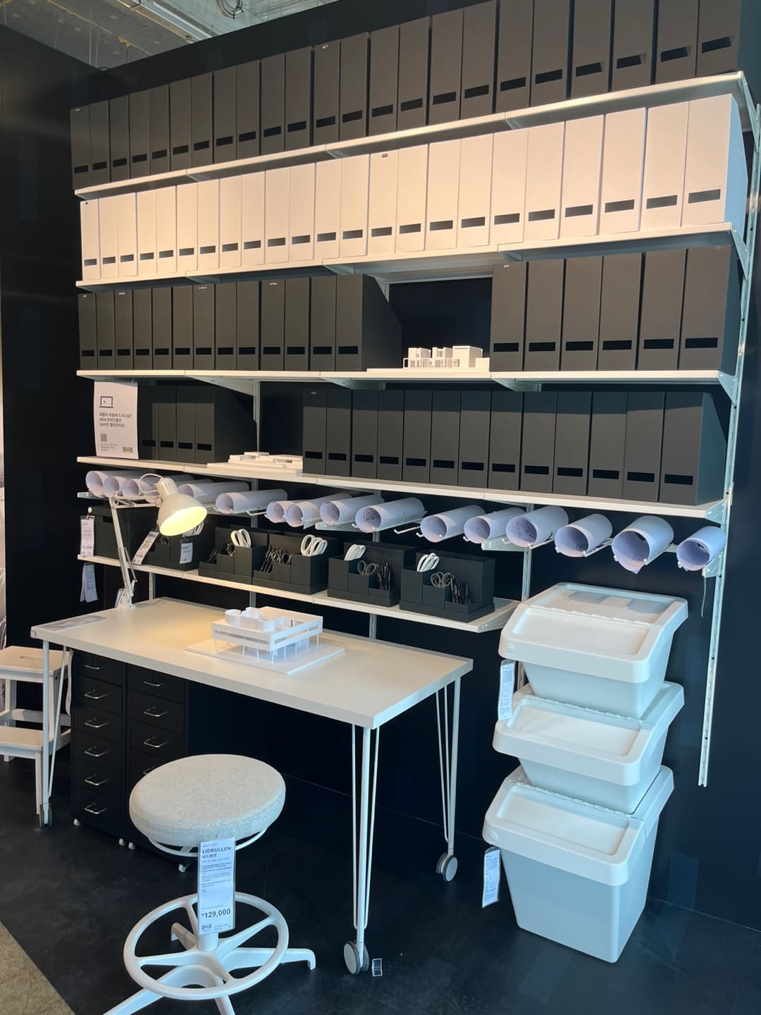 학부생이었던 사람 입장에서 볼 때 학부생은 저렇게 많은 파일철은 별로 안 필요할 것 같다. 파일은 다 노트북에 있으니까 노트북도 올려둘 수 있게 오히려 책상이 더 넓어야 할텐데. 그리고 사진을 핀 꽂아서 볼 수 있는 판이 필요해보인다. 저렇게 도면이 말려서 하나하나씩 들어가있는 건 좋은데, 파일철 둘 선반에 차라리 도면을 붙여놓고 볼 수 있게 해두는 게 낫지 않을까?