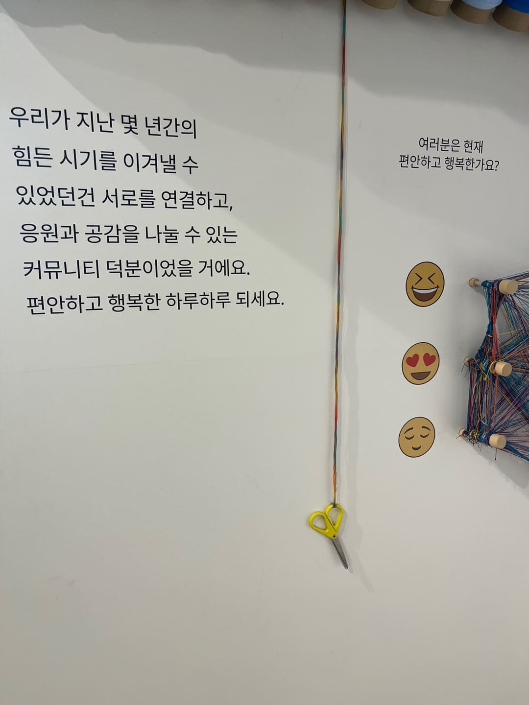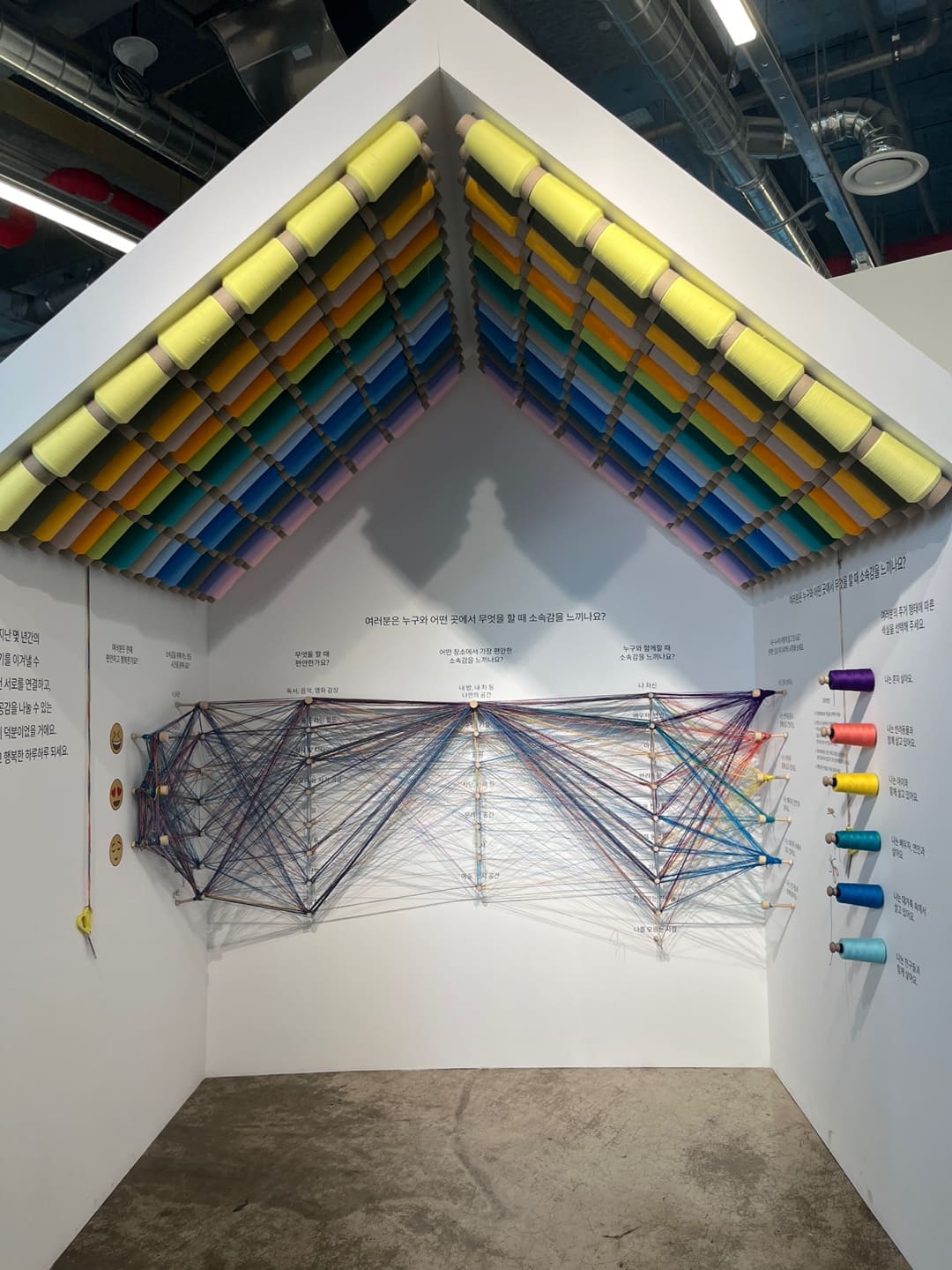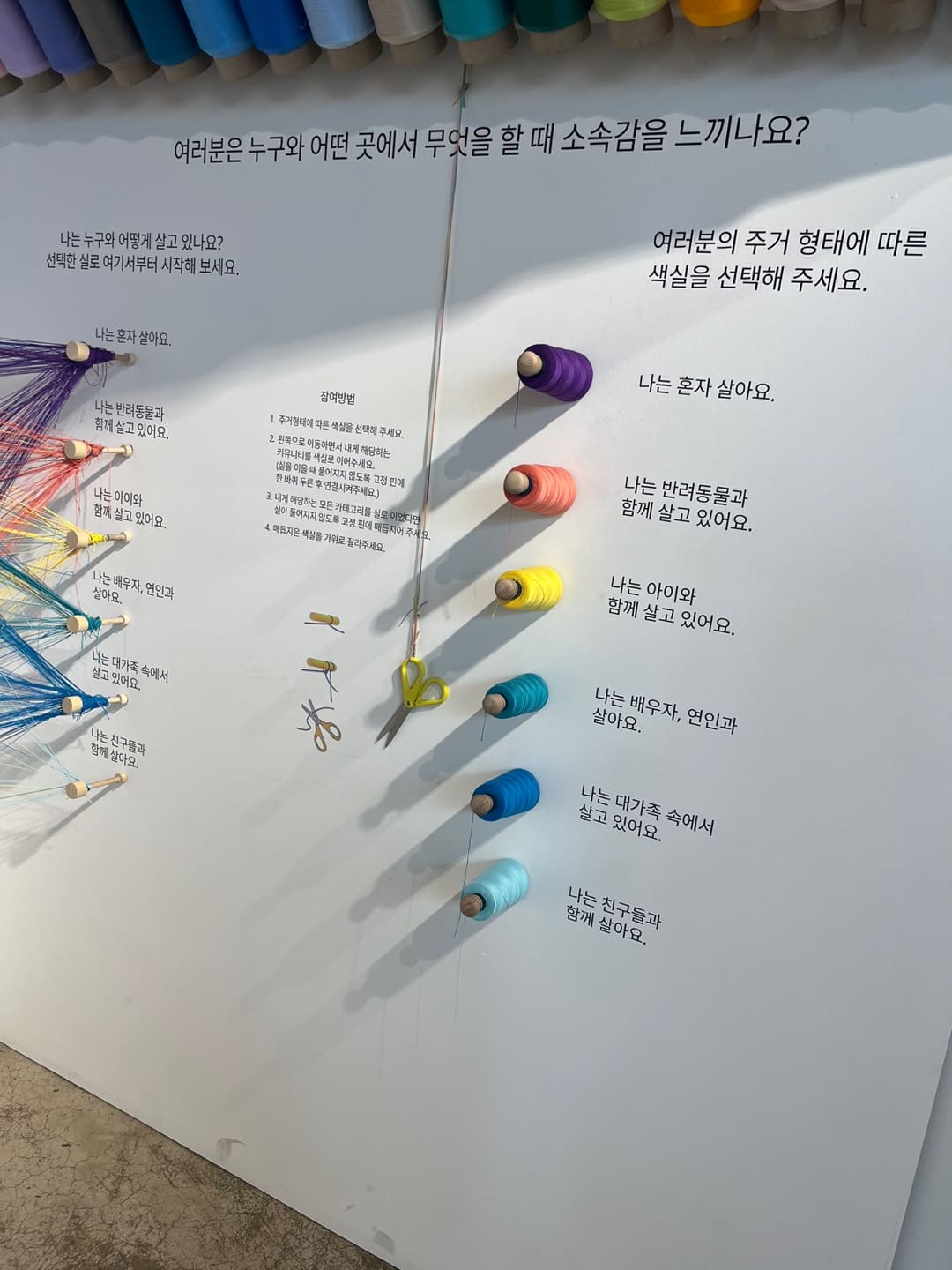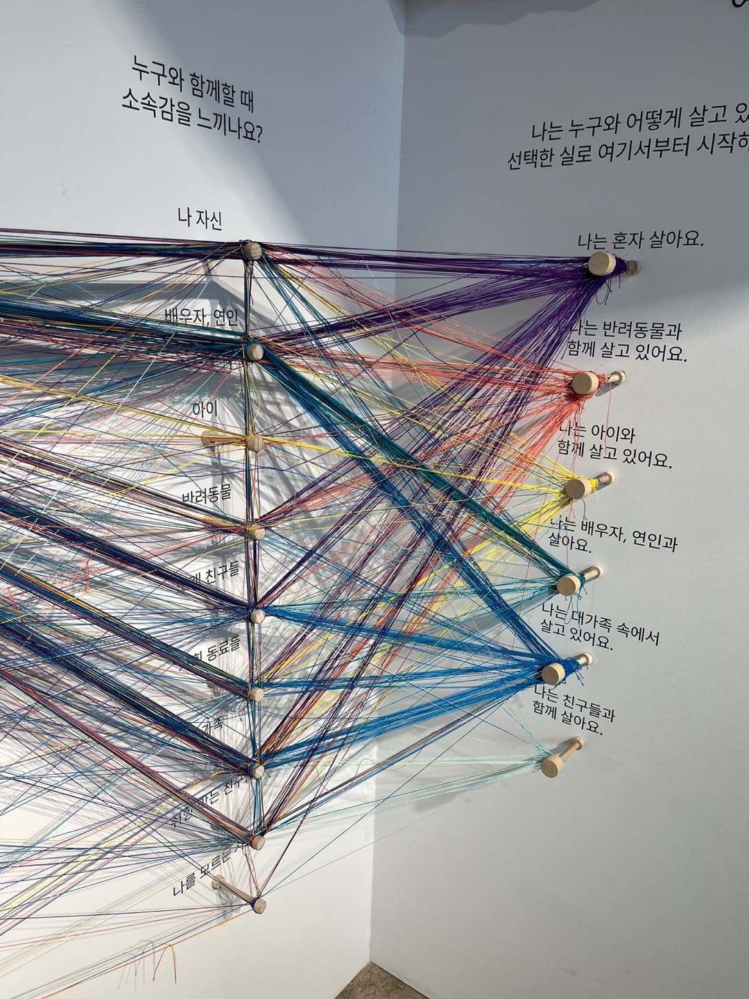 누구와 어떤 곳에서 언제 무엇을 할 때 소속감을 느끼는지, 그래서 행복한지를 이 곳에 방문한 사람들이 직접 매달아놓은 실을 볼 수 있었다. 이게 가장 신기했다.