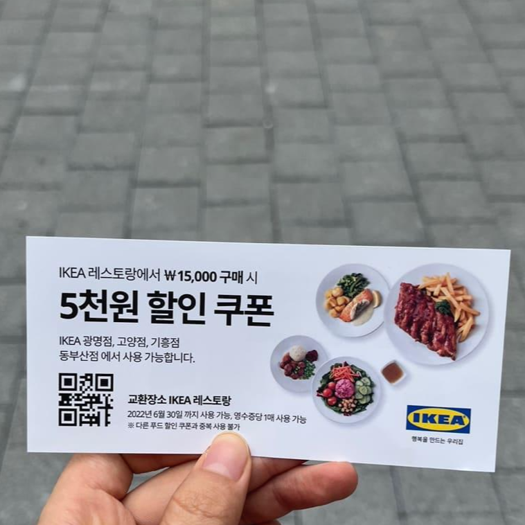 이케아 광명점, 고양점, 기흥점, 동부산점에서 사용 가능한 이케아 레스토랑 5천원 할인쿠폰도 줬는데, 그 지점들이 멀어서 팝업 스토어에 온 거라 아마 못 쓸 듯....