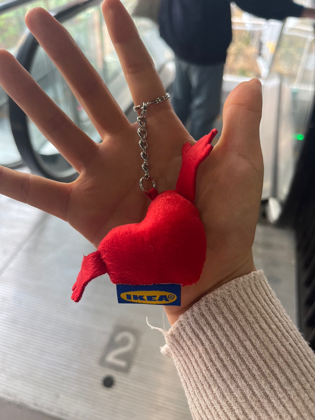 맘에 드는 공간을 해시태그와 함께 인스타에 업로드하면 사진에 보이는 키링 두개나 에코백 중에서 하나를 선물로 주는데, 하트 키링이 너무 귀여워서 이걸로 받았다. 두 팔 벌려서 사랑한다고 하는 것 같아서 맘에 들었다