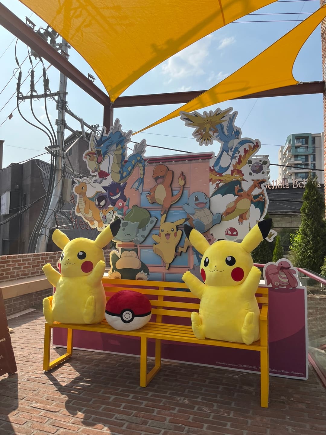 밖에서 피카츄랑 사진찍을 수 있어서 남자친구 사진 찍어주려고 했는데 너무 부끄러워해서 못찍어줌