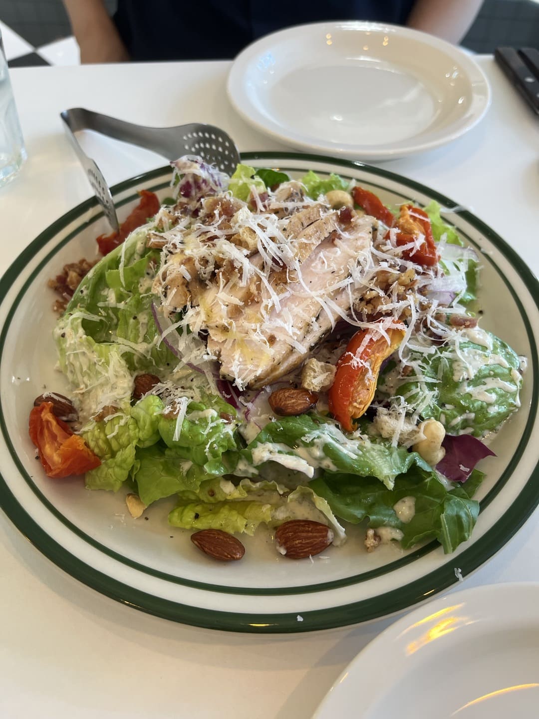 채식은 일단 미루고 치킨시저 샐러드랑 빤제로띠 시켰는데 샐러드가 예쁘게 나와서 사진을 찍고 먹었다.