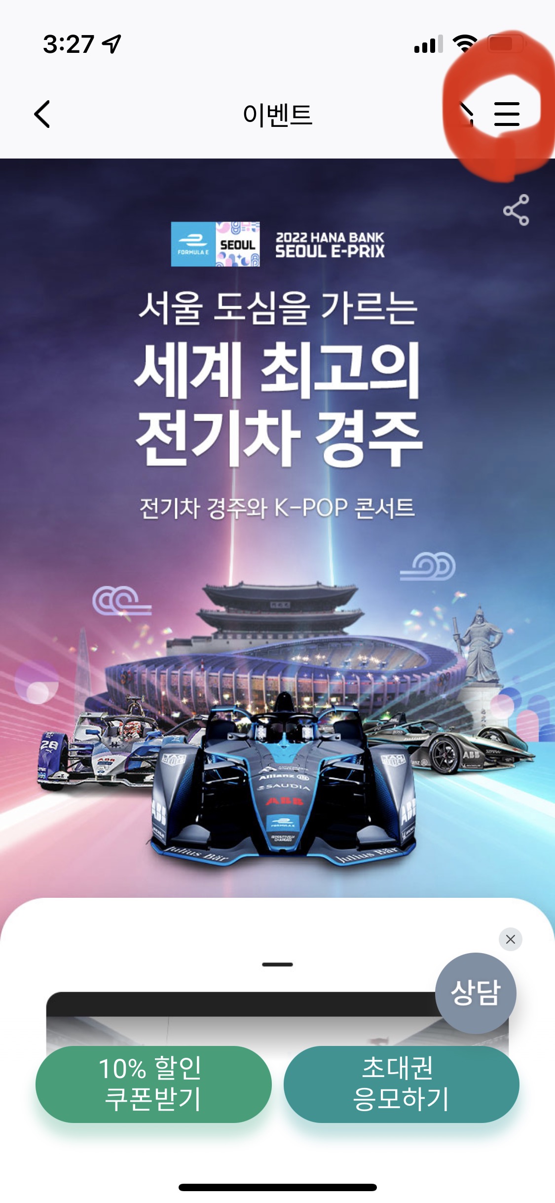 아까 뜬 광고 알림을 누르거나 하나은행 앱을 눌러서 앱에 들어가준다