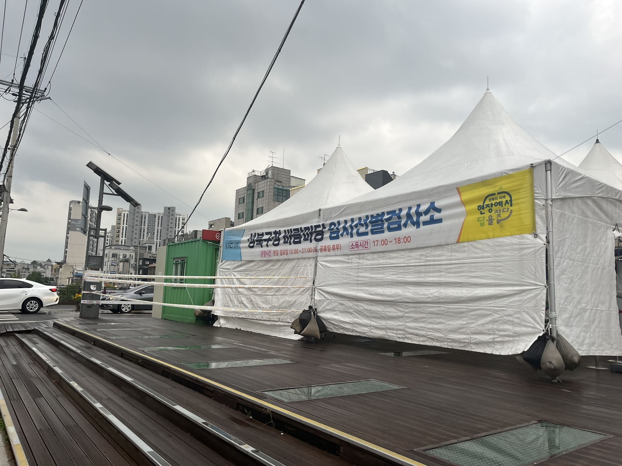 저희 집 근처 성북구청 바람마당 앞 임시선별검사소가 문을 닫았다는 뉴스 기사만 있지 다시 열었다는 말이 없더라구요? 근데 다시 열었습니다.