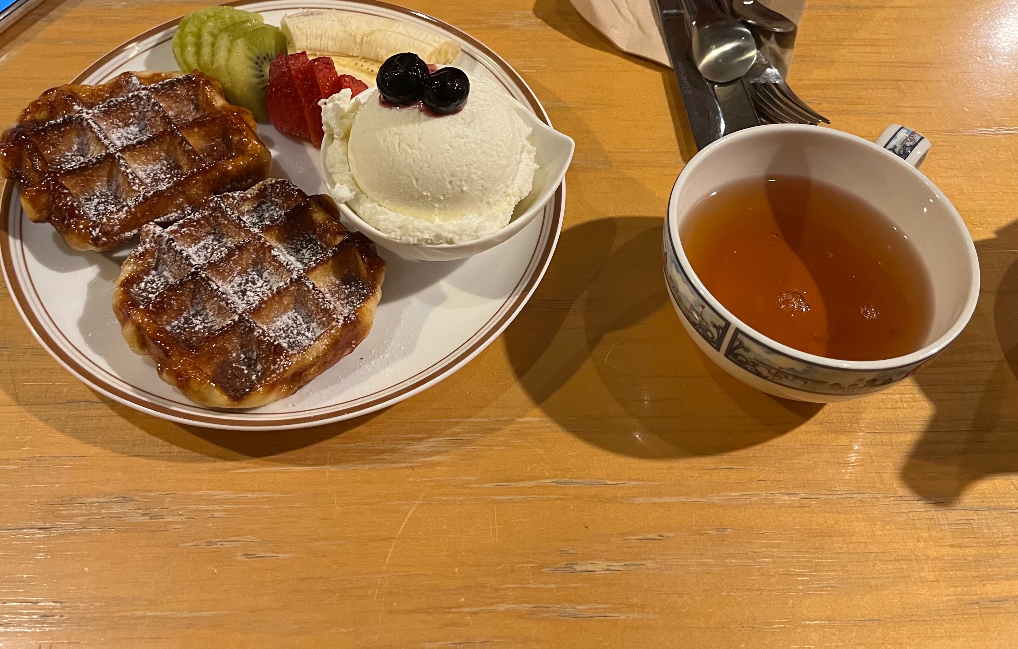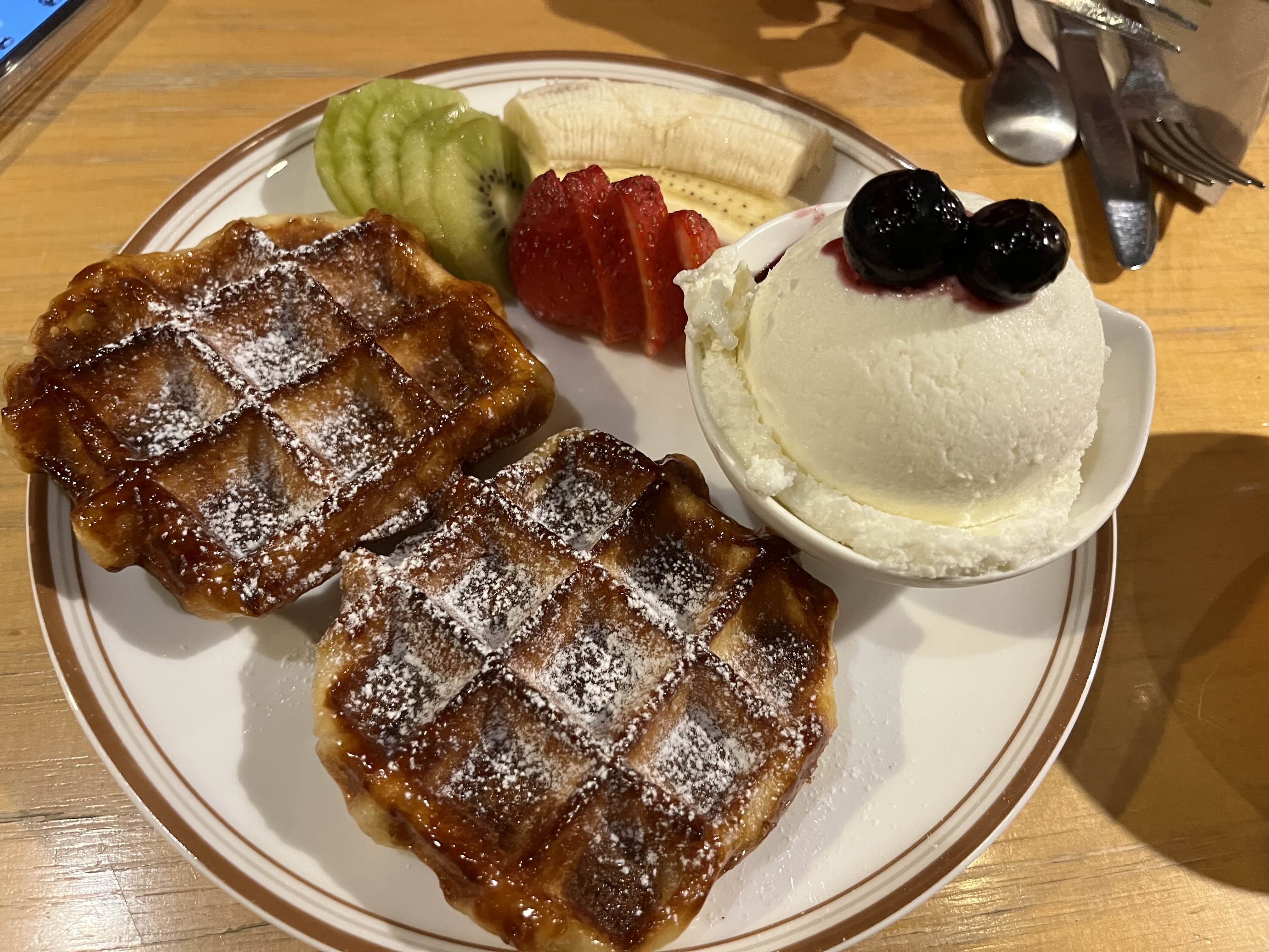 와플에 토핑으로 과일이랑 블루베리치즈아이스크림