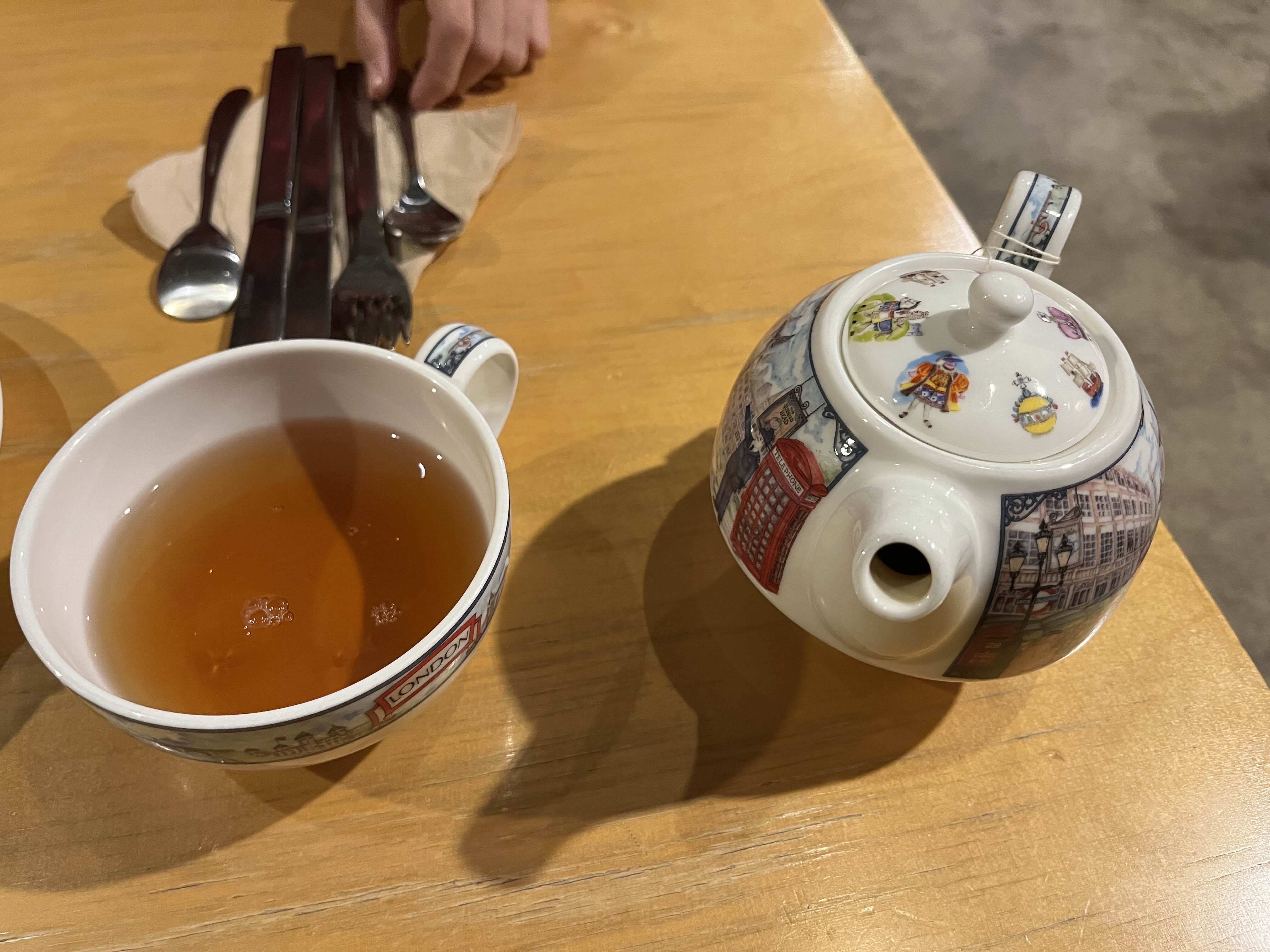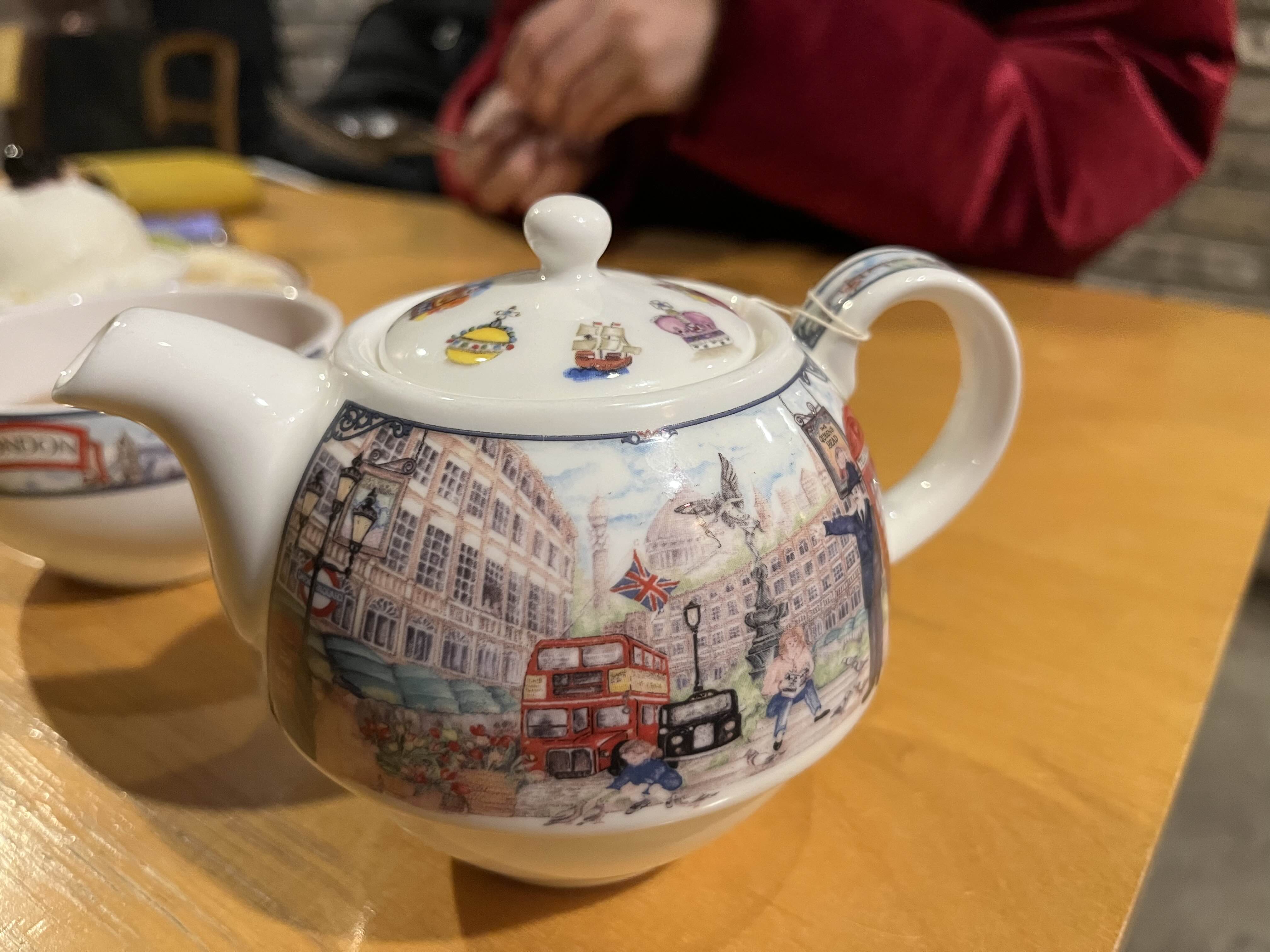 얼그레이를 시켰는데 주전자에 영국 런던이 그려져 있다